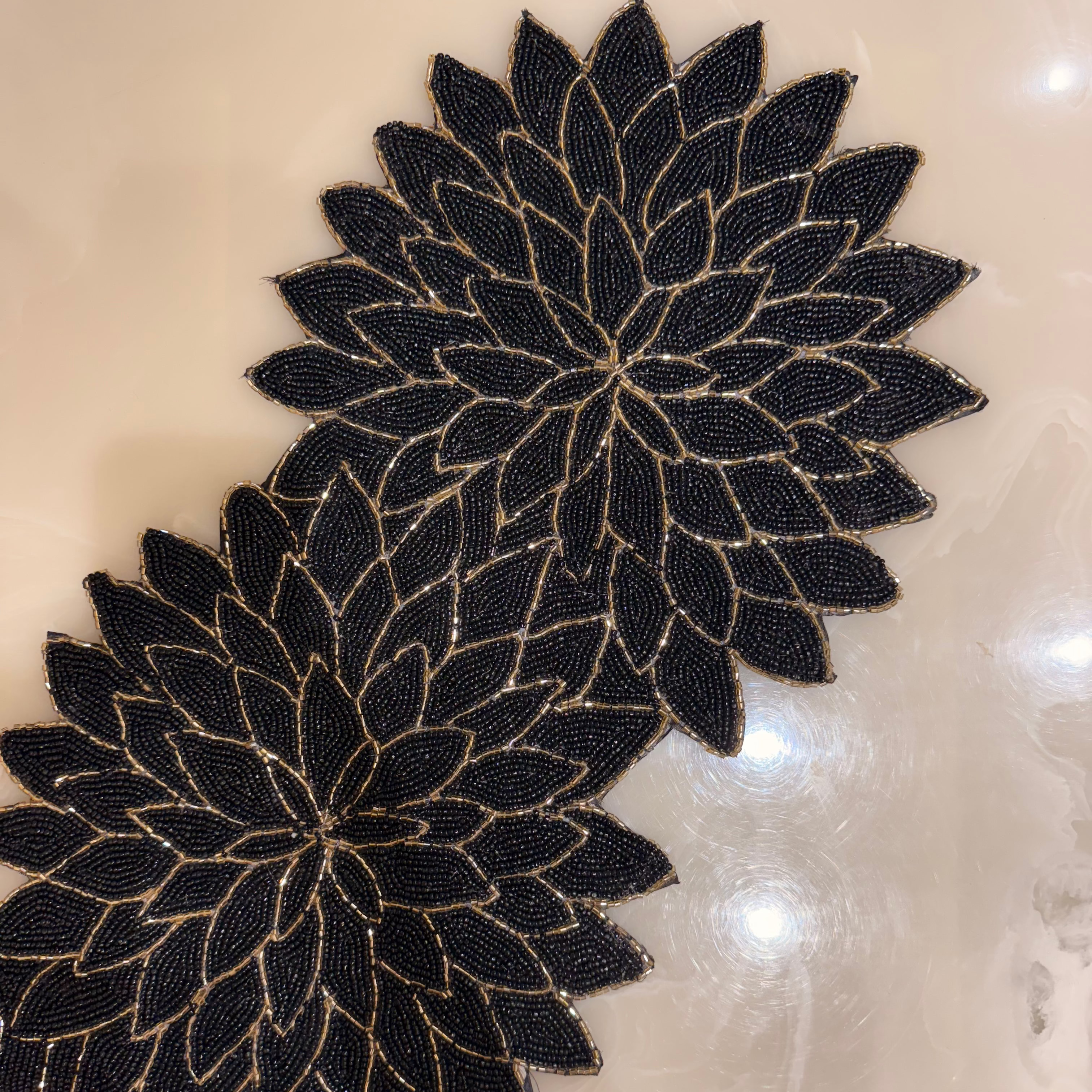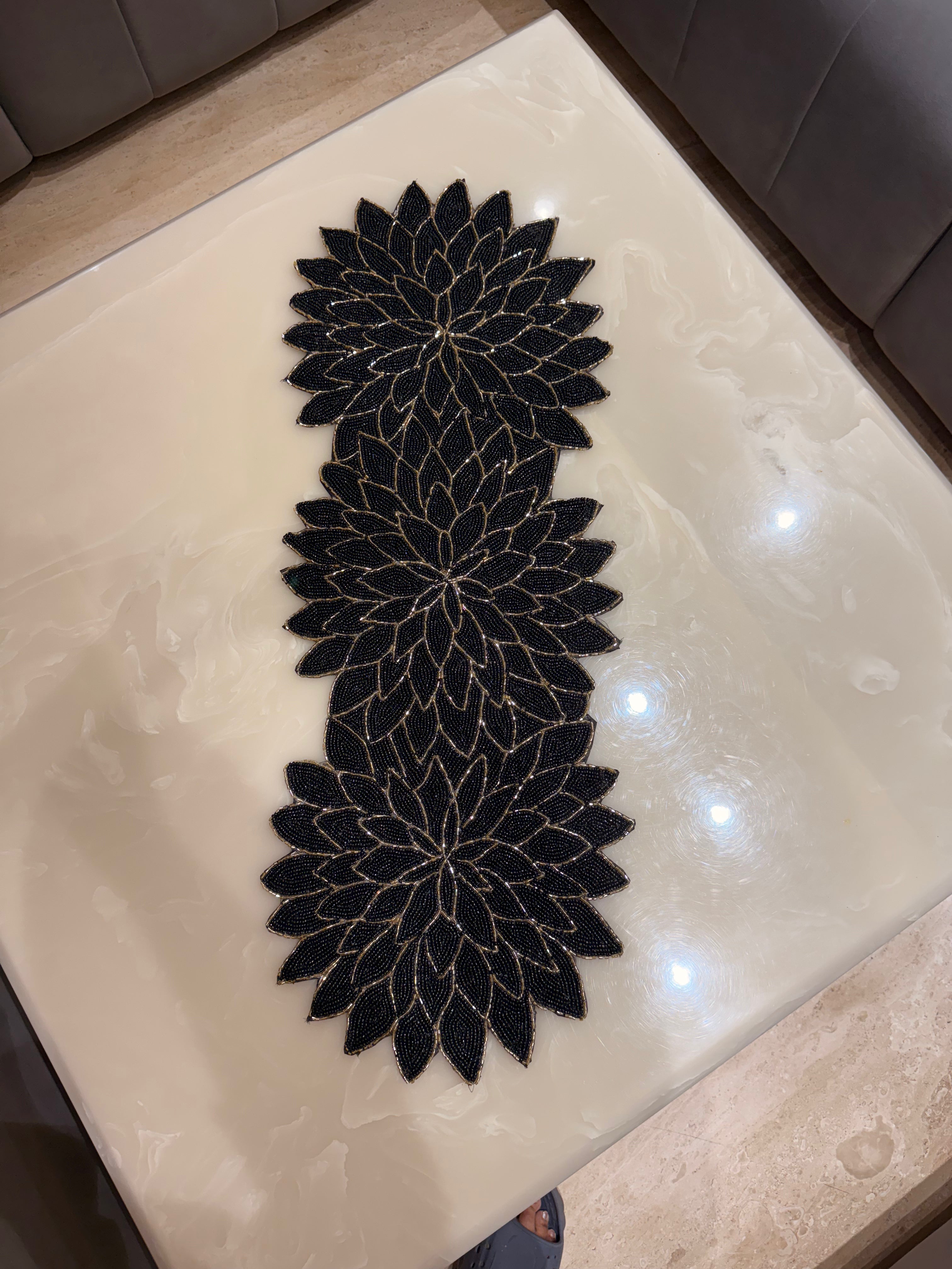 Bring timeless elegance to your home with this gold & black premium beaded table runner and placemats. Intricately handcrafted with premium beads, this piece shines beautifully under natural and artificial light, making it perfect for both everyday dining and festive occasions.