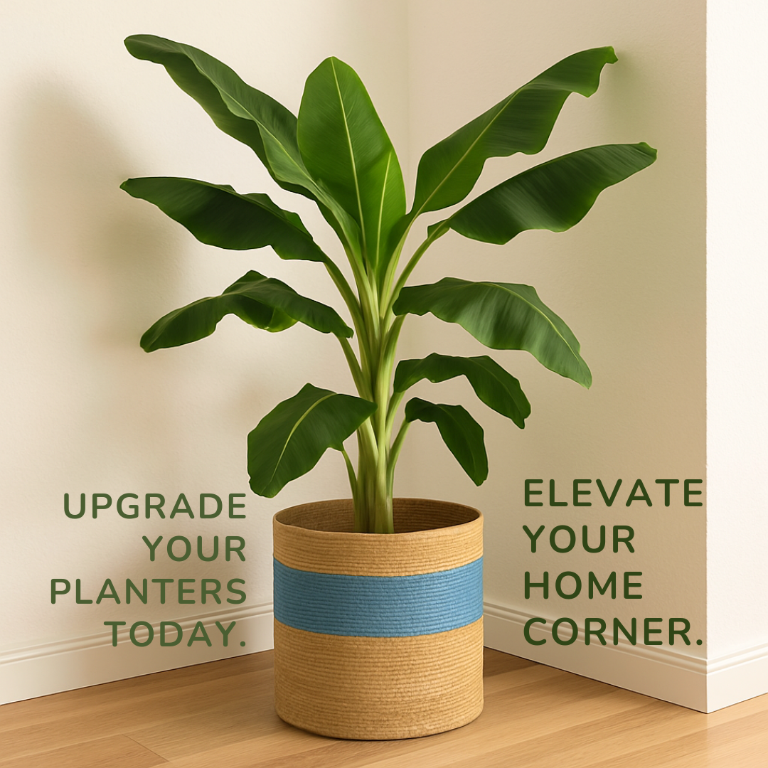 Meet the Blue Banded Jute Basket—a harmonious fusion of tradition and playful charm. Handwoven with care from 100% natural jute, this basket features a soft blue band in the center, adding a delicate pop of color to its earthy natural tones.
