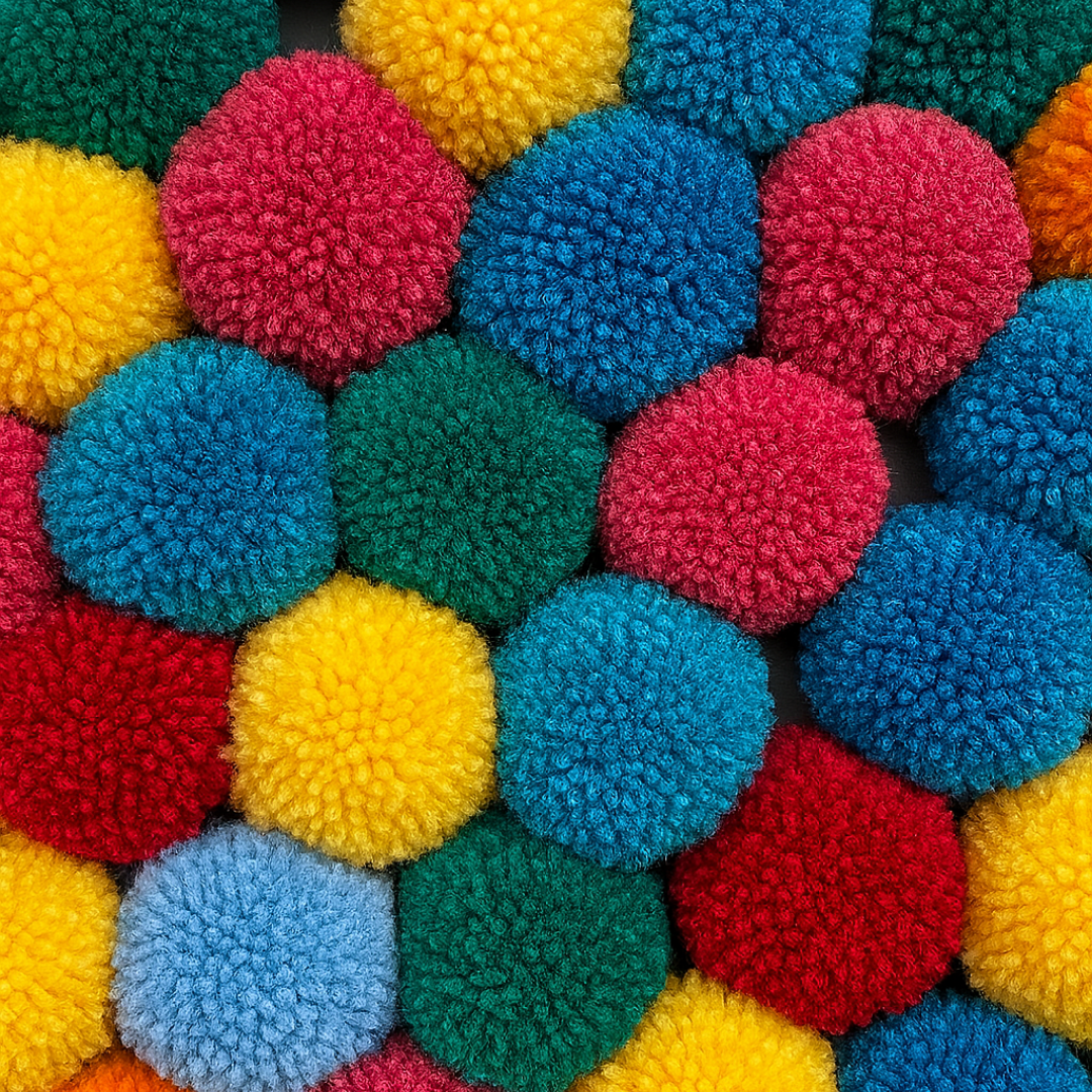 • 🎨 Handmade Pom Poms – Made from soft cotton wool in a range of fun, happy colors