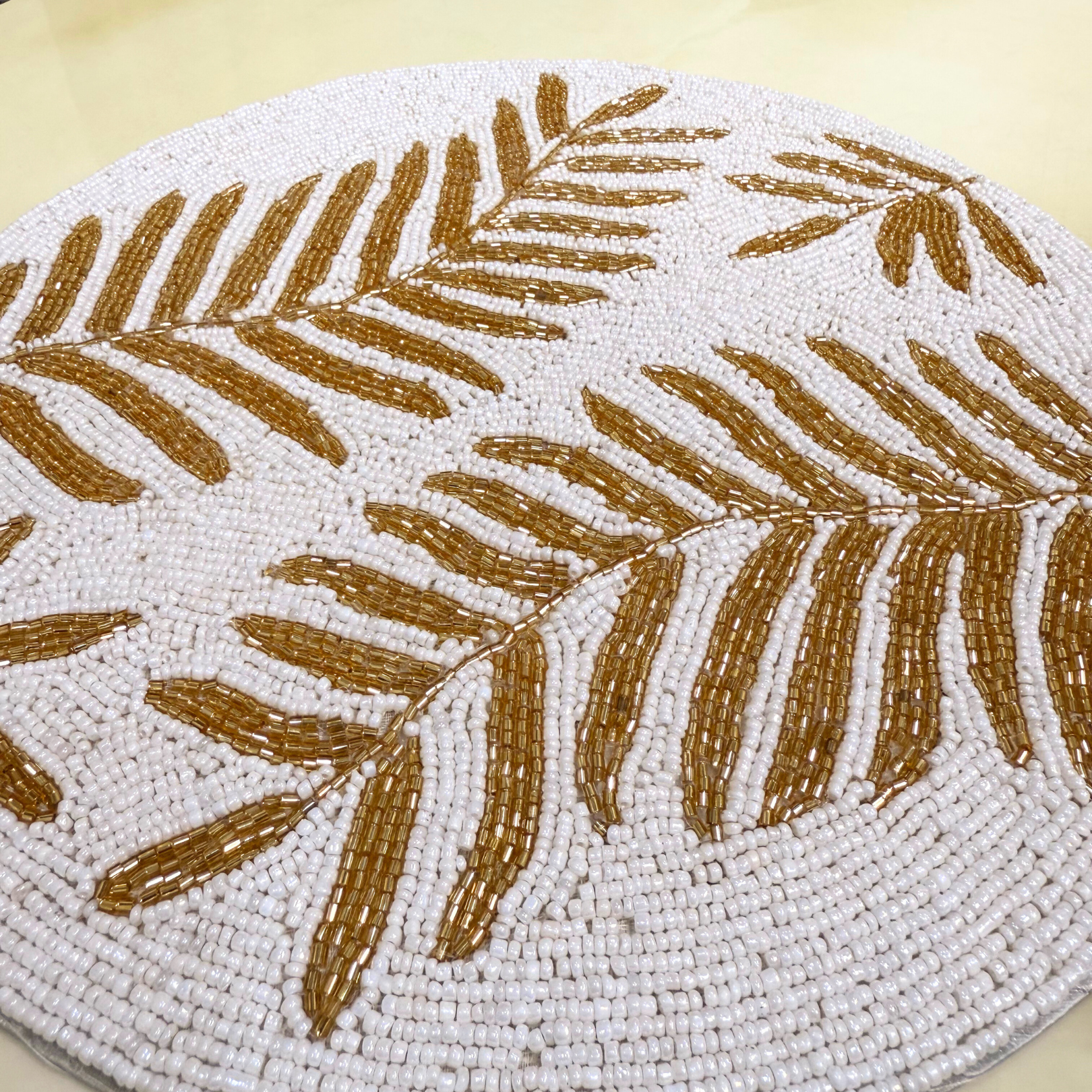 ✨ Golden Leaf Premium Beaded Table Placement – 12 inches