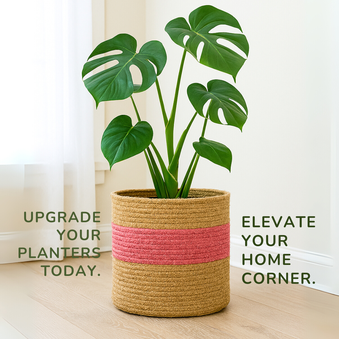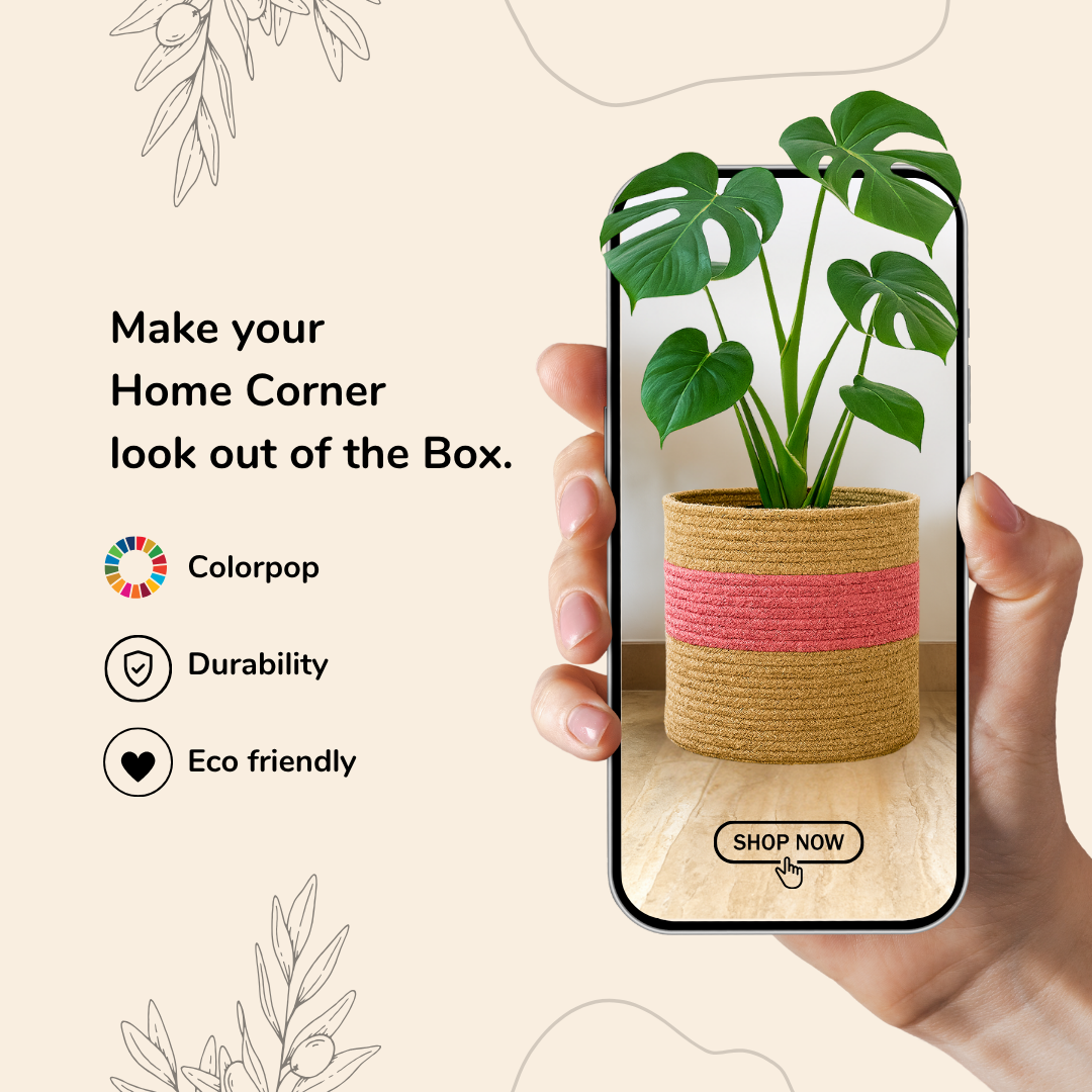 Meet the Pink-Banded Jute Basket—a harmonious fusion of tradition and playful charm. Handwoven with care from 100% natural jute, this basket features a soft pink band in the center, adding a delicate pop of color to its earthy natural tones.