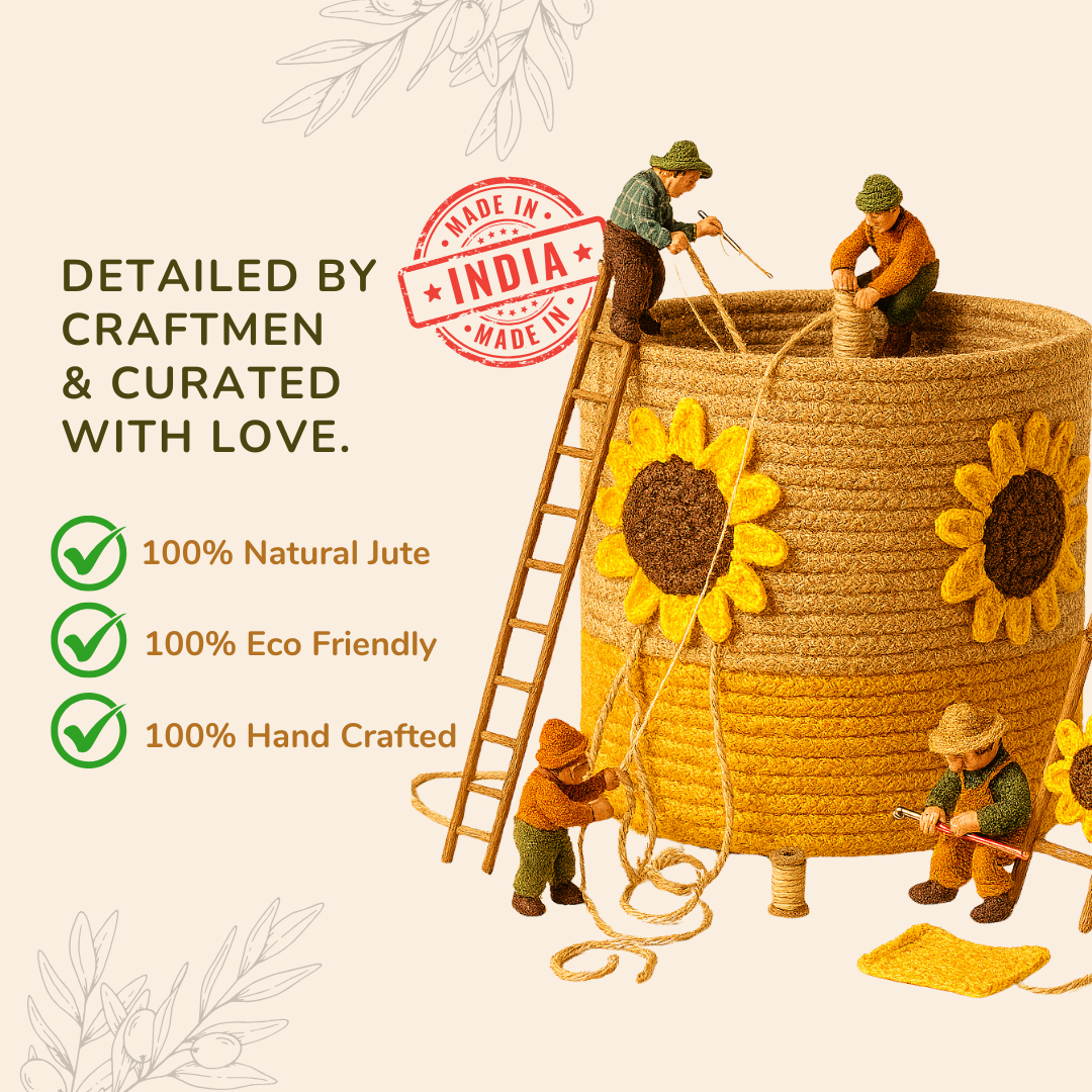 Made with 100% natural jute and woven by skilled Indian artisans, this basket is as functional as it is decorative. Use it to store essentials, organize kids’ items, or add a sunshine vibe to your living space.