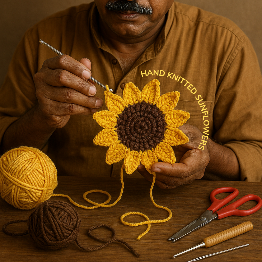🌻 4 Crochet Sunflowers – Intricately handknitted for a 3D, elevated basket
