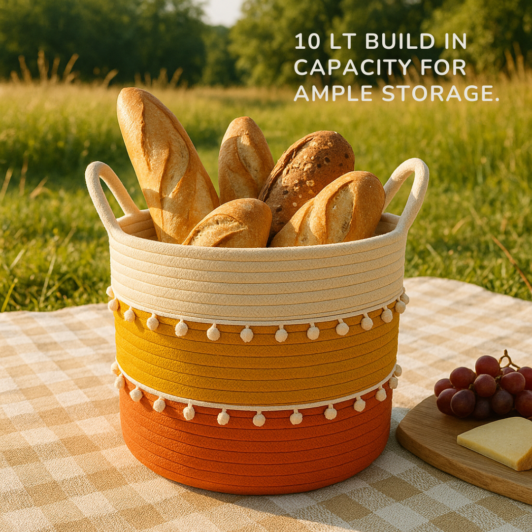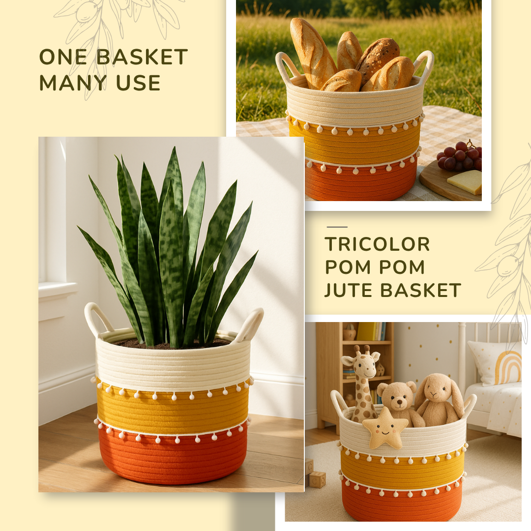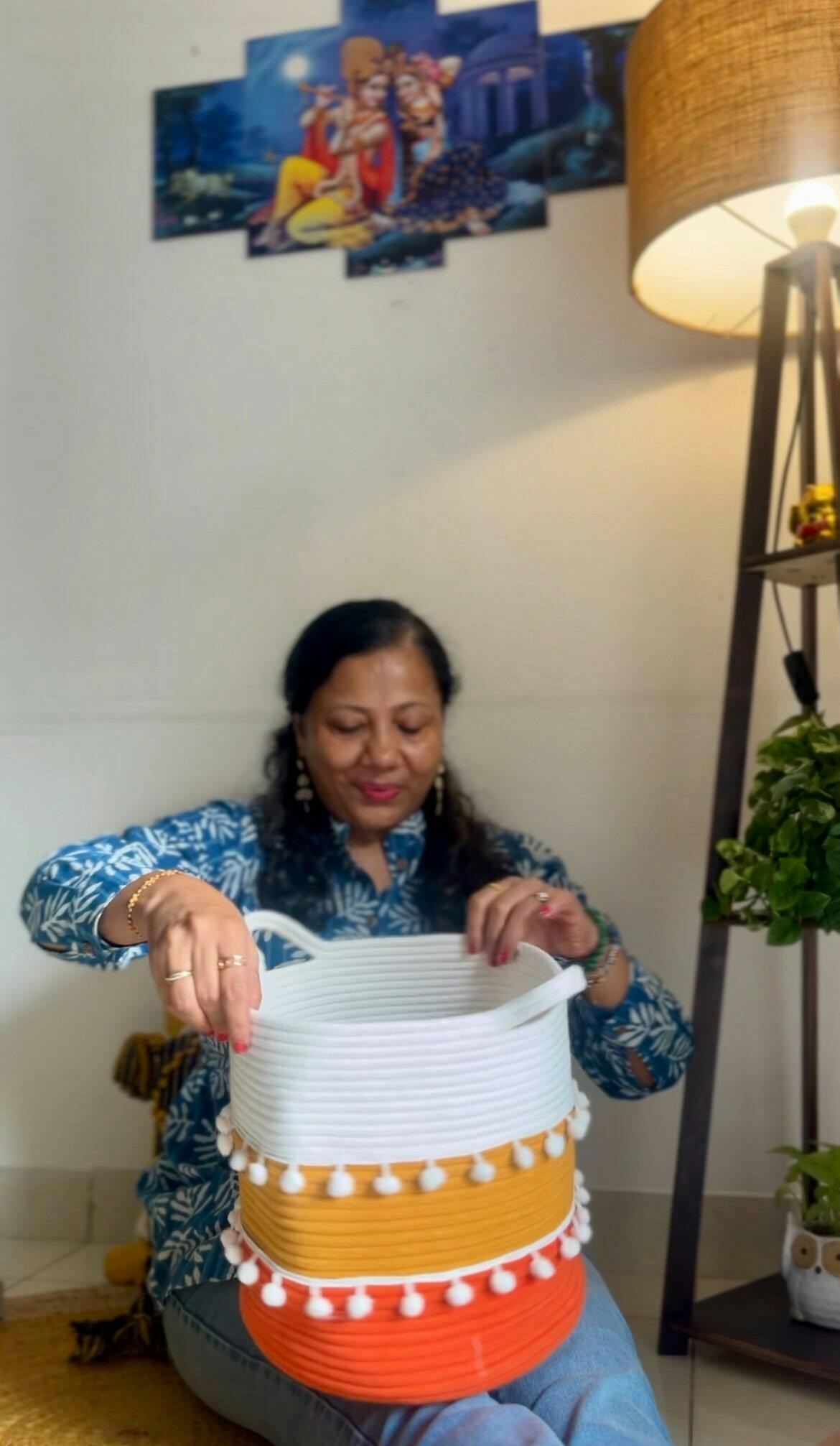 🎉 White Pom pom Multicolor basket  – Bright, Cheery & 100% Handcrafted in India