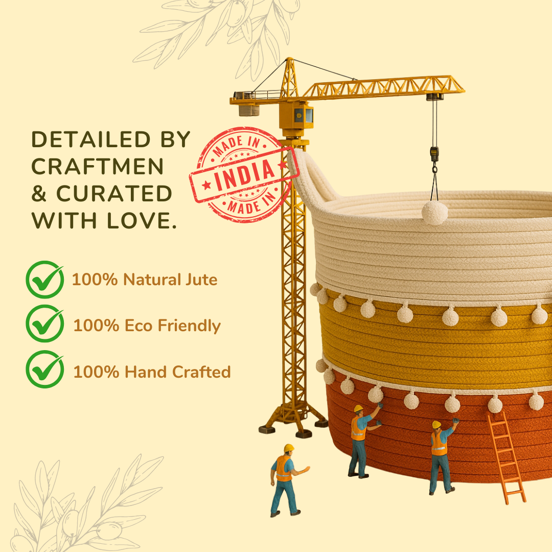 • đź§µ Artisan Crafted in India – Skillfully woven and decorated by local artisans