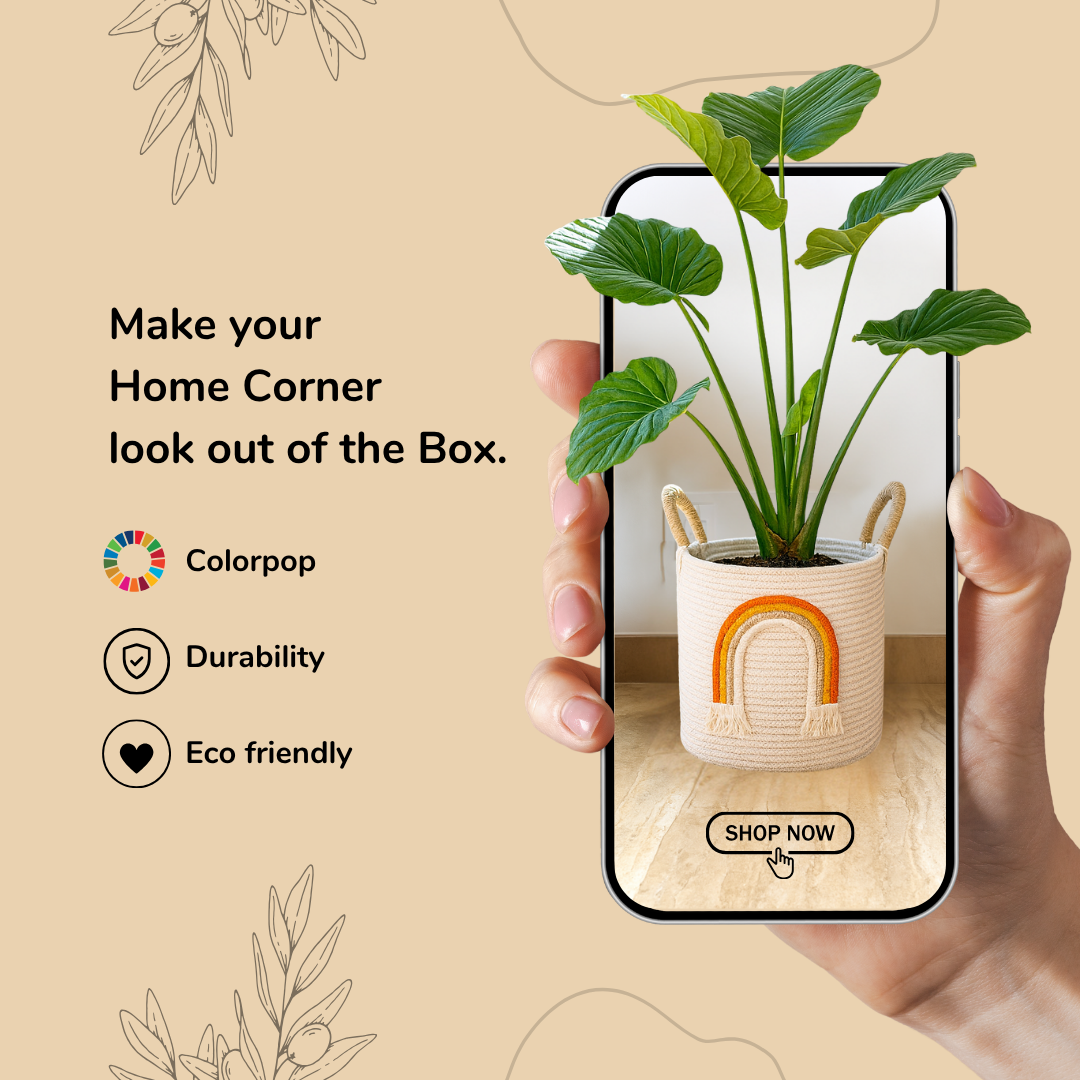 Add a touch of playful charm and earthy warmth to your home with this handwoven cotton knitted basket, designed with a beautiful rainbow applique. Handcrafted by Indian artisans, this basket blends soft, durable cotton with traditional rope weaving techniques—creating a unique piece that balances aesthetic charm with everyday practicality.